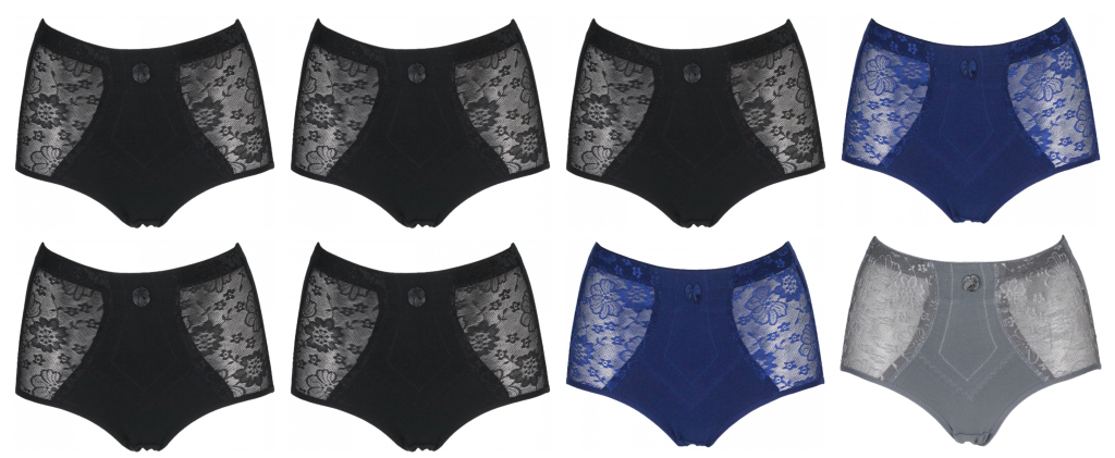 Lichte corrigerende J&C Dames Tailleslips H201, mix van 5x zwart, 2x navy en 1x grijs. De zijkanten zijn voorzien van kant.
